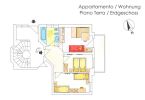 Ferienwohnung 1Das geräumige 2-5 Personen Appartement verfügt über zwei Schlafzimmer, eine voll ausgestattete Küche mit gemütlicher Sitzgelegenheit und ein Badezimmer mit Badewanne und Duschwand, WC und Bidet. Das Appartement hat eine Terrasse mit Tisch, Stühlen und Liegestuhl. Ausstattung der Wohnung: